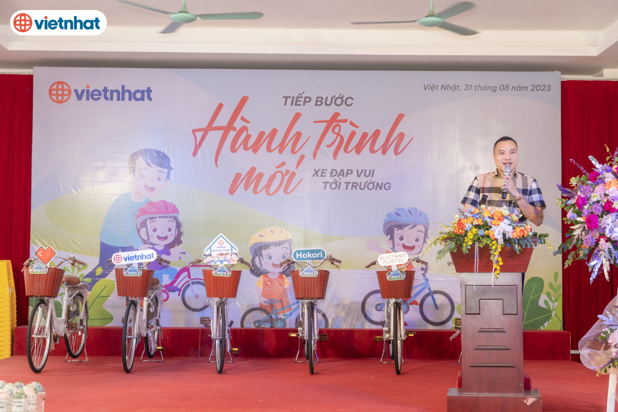 Chiều nay ngày 31 tháng 8 năm 2023, Công ty TNHH sản xuất Nhựa Việt Nhật tổ chức chương trình “Tiếp bước hành trình mới - Xe đạp vui tới trường”, trao tặng 300 chiếc xe đạp Thống Nhất tới các em nhỏ là con của cán bộ, công nhân viên có hoàn cảnh khó khăn, có thâm niên làm việc, nhiều cống hiến với công ty.